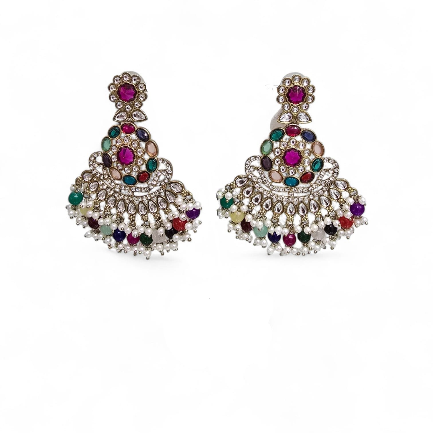 Introducing our Navrangi Kundan Chandbali Earrings — crafted for the bride who loves color, tradition, and grandeur in one look.